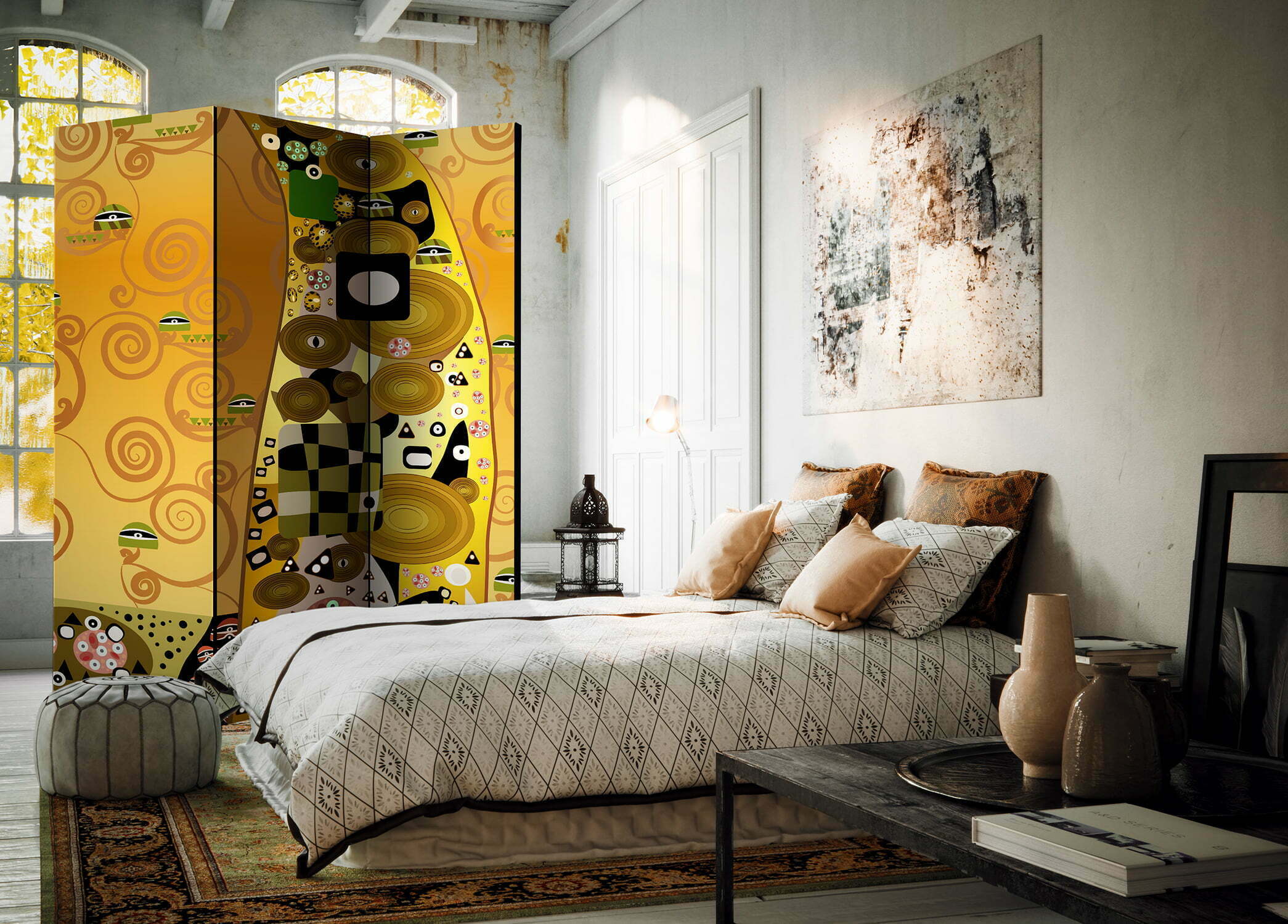 Dekoratives Paravent “Artistic Geometry [Room Dividers]” ist ein besonderes Schmuckstück für die modernen Inneräume. 3-teilig, hergestellt aus Holz und beidseitig bedrucktes Paravent teilt nicht nur diskret den Raum sonder kreiert auch in dem Raum ein fabelhaftes Arrangement. Perfekte Herstellung sowie originelle Motive in der Full HD Druckqualität verursachen, dass die Zimmerparavents jedem Raum einen einmaligen Charme verleihen. Die dekorativen Paravents für die Wohnung, dass ist mit Sicherheit eine originelle Idee für die Dekoration des Innenraumes. Es lohnt sich ihre praktische Anwendung zu erwähnen – die Zimmerparavents kann man z.B. zwecks der Kachierung des Wäschetrockners nutzen. Das Paravent ist eine sehr originelle Dekoration von Räumen, die man nutzen kann, sowohl in der Wohnung wie auch in einem Atelier z.B. im Friseursalon, Arztpraxis oder im Buchhaltungsbüro.
