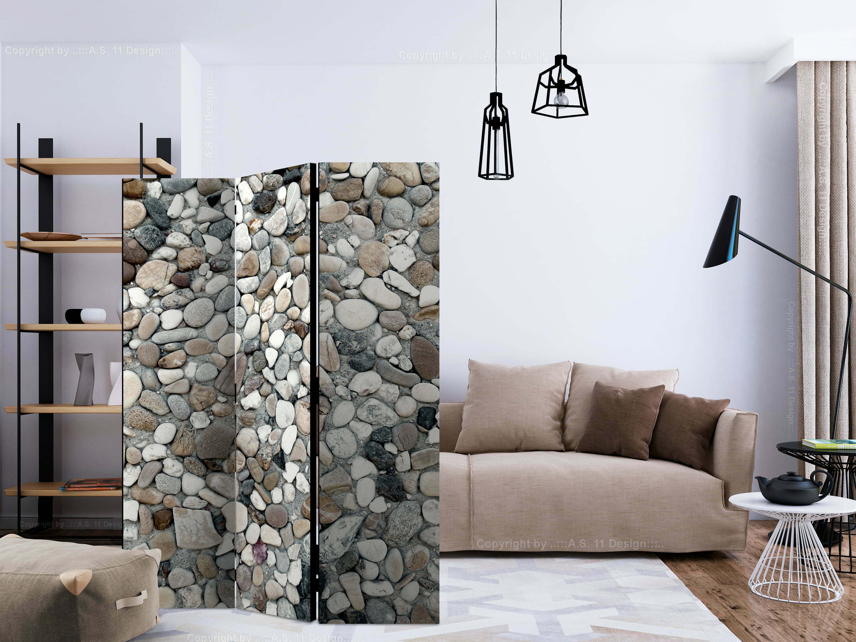 3-teiliges Paravent – Beach Pebbles [Room Dividers]
