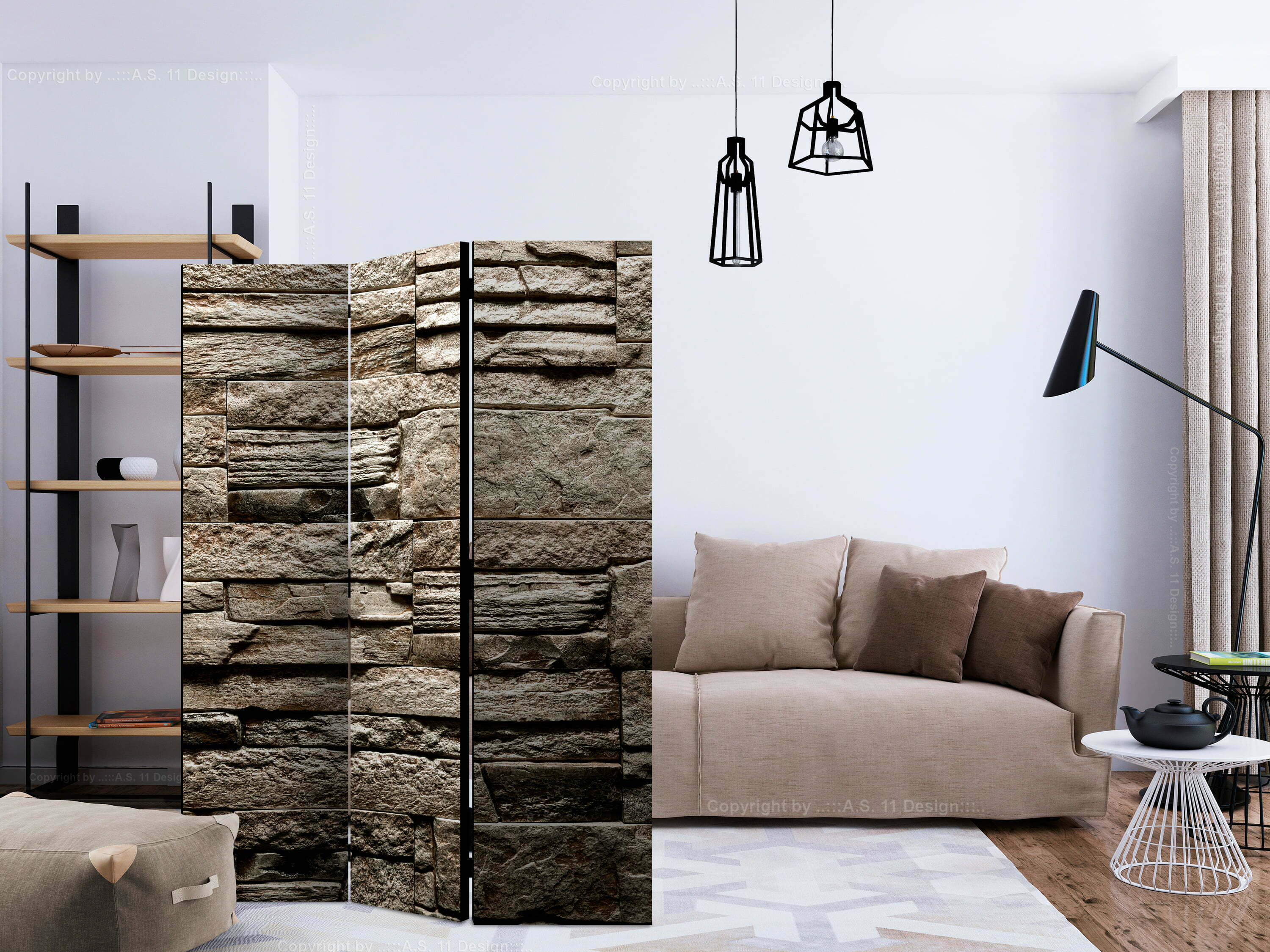 3-teiliges Paravent – Beautiful Brown Stone [Room Dividers]