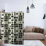 Dekoratives Paravent “Black and White Dots [Room Dividers]” ist ein besonderes Schmuckstück für die modernen Inneräume. 3-teilig, hergestellt aus Holz und beidseitig bedrucktes Paravent teilt nicht nur diskret den Raum sonder kreiert auch in dem Raum ein fabelhaftes Arrangement.