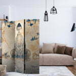 Dekoratives Paravent “Buddha of Prosperity [Room Dividers]” ist ein besonderes Schmuckstück für die modernen Inneräume. 3-teilig, hergestellt aus Holz und beidseitig bedrucktes Paravent teilt nicht nur diskret den Raum sonder kreiert auch in dem Raum ein fabelhaftes Arrangement.