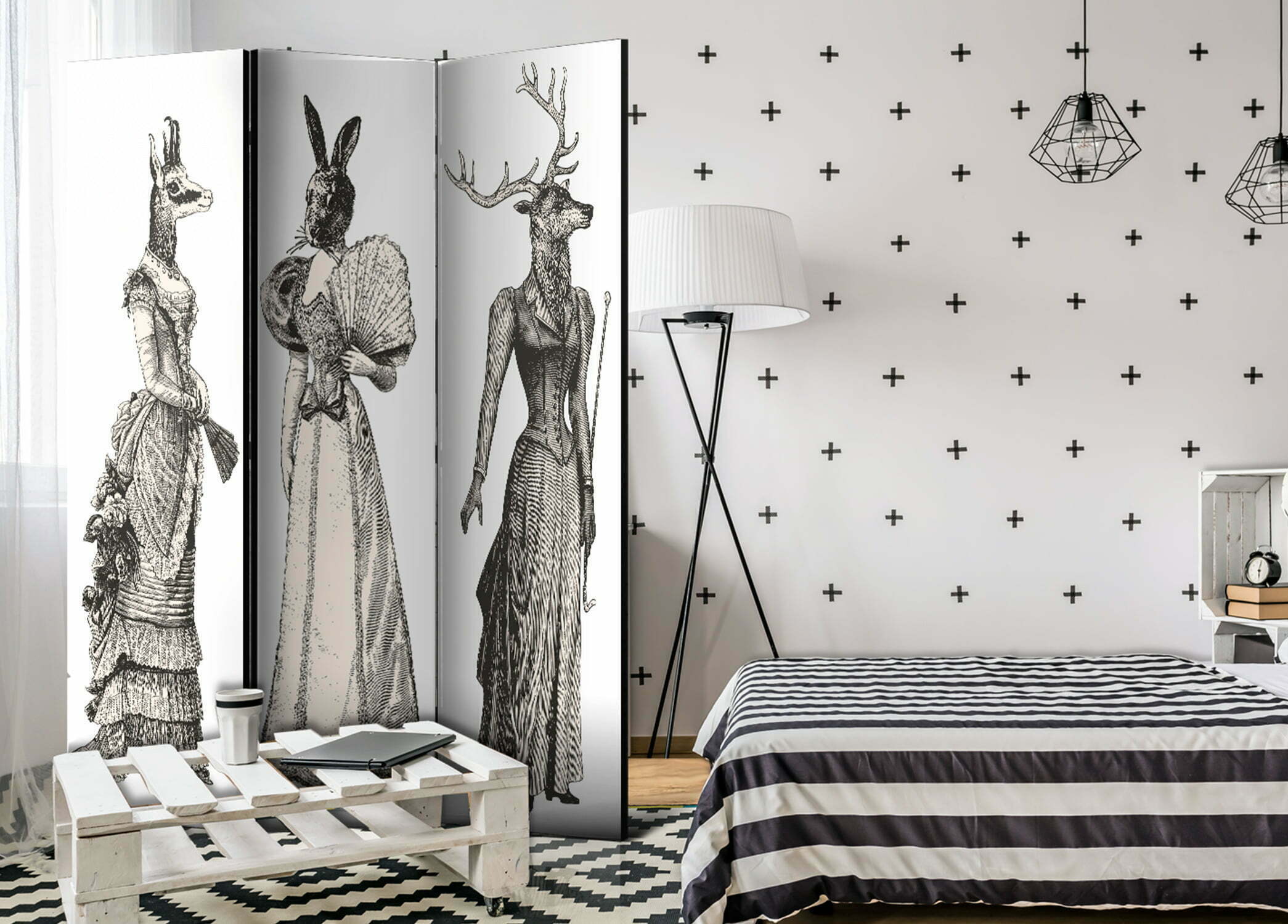 Dekoratives Paravent “Chic Zoo [Room Dividers]” ist ein besonderes Schmuckstück für die modernen Inneräume. 3-teilig, hergestellt aus Holz und beidseitig bedrucktes Paravent teilt nicht nur diskret den Raum sonder kreiert auch in dem Raum ein fabelhaftes Arrangement. Perfekte Herstellung sowie originelle Motive in der Full HD Druckqualität verursachen, dass die Zimmerparavents jedem Raum einen einmaligen Charme verleihen. Die dekorativen Paravents für die Wohnung, dass ist mit Sicherheit eine originelle Idee für die Dekoration des Innenraumes. Es lohnt sich ihre praktische Anwendung zu erwähnen – die Zimmerparavents kann man z.B. zwecks der Kachierung des Wäschetrockners nutzen. Das Paravent ist eine sehr originelle Dekoration von Räumen, die man nutzen kann, sowohl in der Wohnung wie auch in einem Atelier z.B. im Friseursalon, Arztpraxis oder im Buchhaltungsbüro.