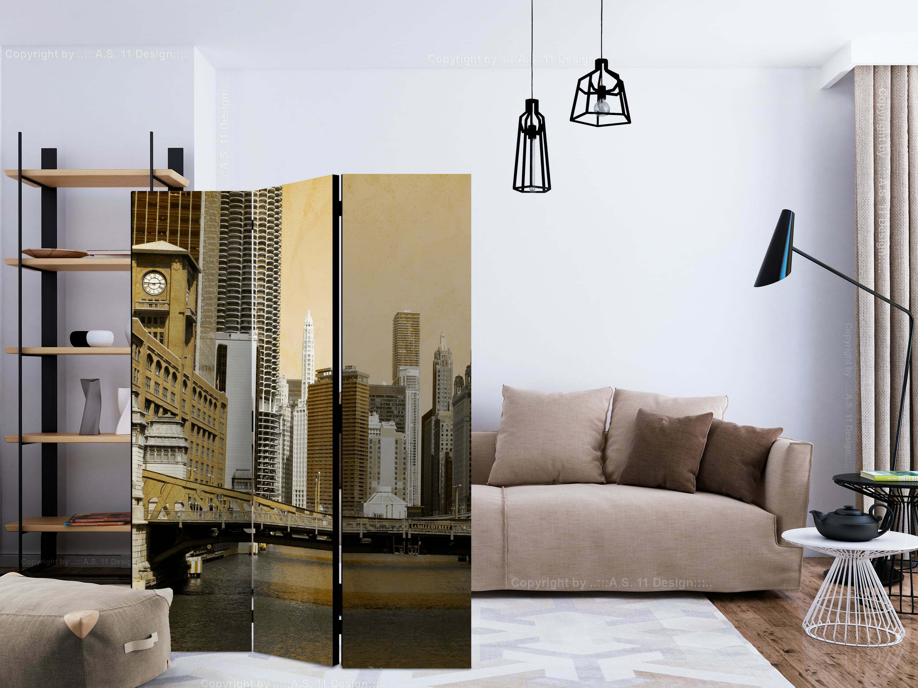 Dekoratives Paravent “Chicago’s bridge (vintage effect) [Room Dividers]” ist ein besonderes Schmuckstück für die modernen Inneräume. 3-teilig, hergestellt aus Holz und beidseitig bedrucktes Paravent teilt nicht nur diskret den Raum sonder kreiert auch in dem Raum ein fabelhaftes Arrangement.