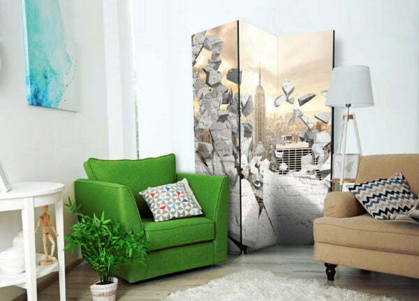 Dekoratives Paravent “City behind the Wall [Room Dividers]” ist ein besonderes Schmuckstück für die modernen Inneräume. 3-teilig, hergestellt aus Holz und beidseitig bedrucktes Paravent teilt nicht nur diskret den Raum sonder kreiert auch in dem Raum ein fabelhaftes Arrangement.