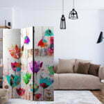 Dekoratives Paravent “Colorful tulips [Room Dividers]” ist ein besonderes Schmuckstück für die modernen Inneräume. 3-teilig, hergestellt aus Holz und beidseitig bedrucktes Paravent teilt nicht nur diskret den Raum sonder kreiert auch in dem Raum ein fabelhaftes Arrangement.