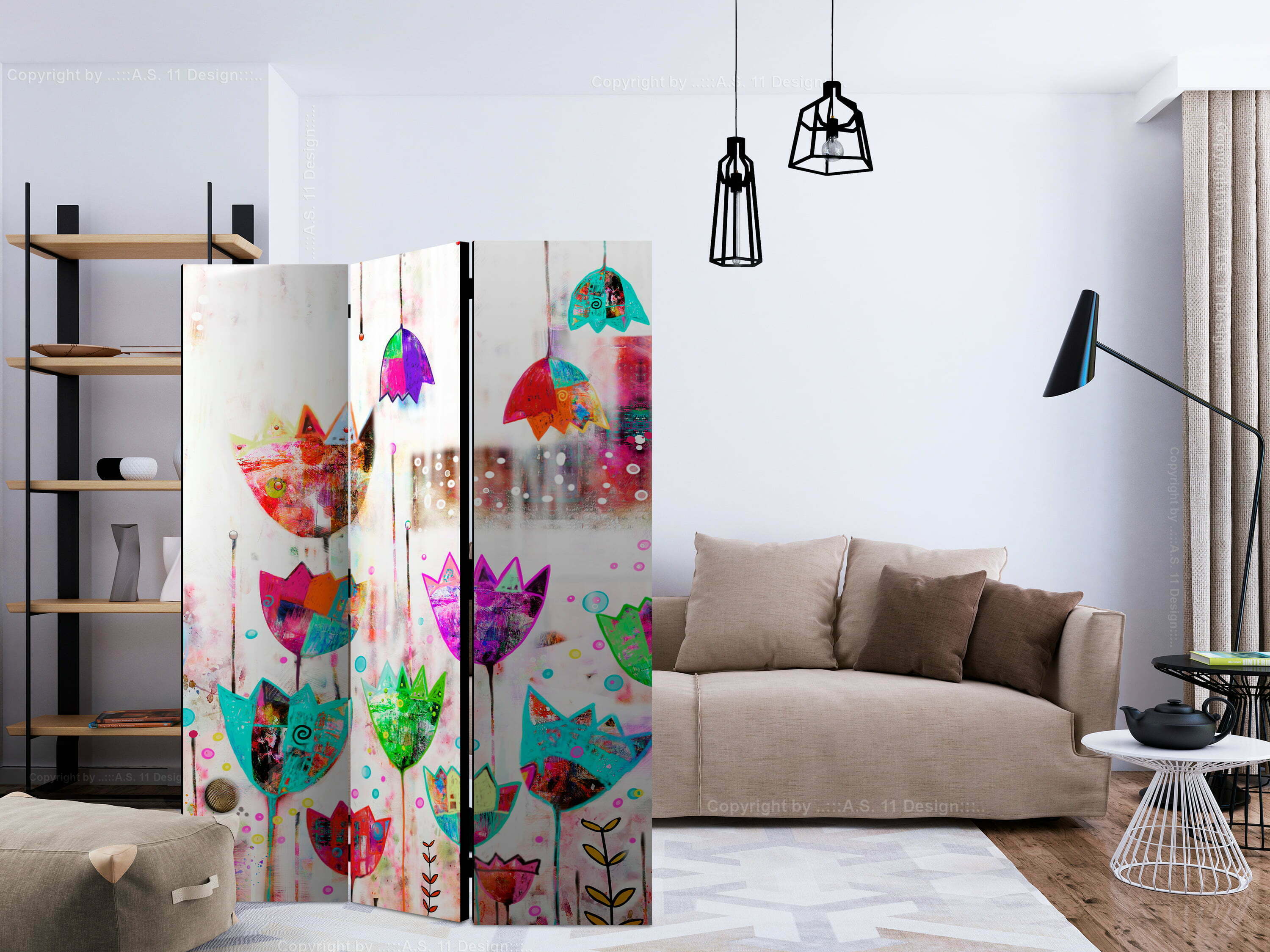 3-teiliges Paravent – Colorful tulips [Room Dividers]