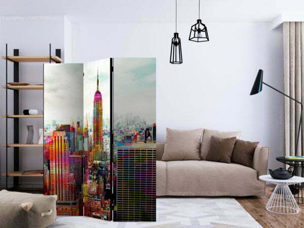 Dekoratives Paravent “Colors of New York City [Room Dividers]” ist ein besonderes Schmuckstück für die modernen Inneräume. 3-teilig, hergestellt aus Holz und beidseitig bedrucktes Paravent teilt nicht nur diskret den Raum sonder kreiert auch in dem Raum ein fabelhaftes Arrangement.