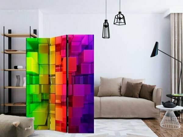 Dekoratives Paravent “Colour jigsaw [Room Dividers]” ist ein besonderes Schmuckstück für die modernen Inneräume. 3-teilig, hergestellt aus Holz und beidseitig bedrucktes Paravent teilt nicht nur diskret den Raum sonder kreiert auch in dem Raum ein fabelhaftes Arrangement.