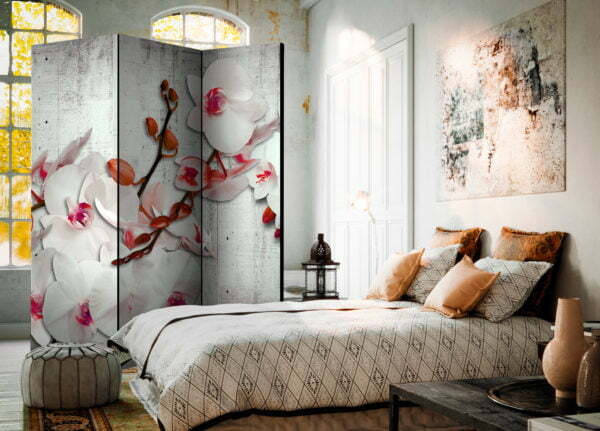 Dekoratives Paravent “Concrete Orchid [Room Dividers]” ist ein besonderes Schmuckstück für die modernen Inneräume. 3-teilig, hergestellt aus Holz und beidseitig bedrucktes Paravent teilt nicht nur diskret den Raum sonder kreiert auch in dem Raum ein fabelhaftes Arrangement. Perfekte Herstellung sowie originelle Motive in der Full HD Druckqualität verursachen, dass die Zimmerparavents jedem Raum einen einmaligen Charme verleihen. Die dekorativen Paravents für die Wohnung, dass ist mit Sicherheit eine originelle Idee für die Dekoration des Innenraumes. Es lohnt sich ihre praktische Anwendung zu erwähnen – die Zimmerparavents kann man z.B. zwecks der Kachierung des Wäschetrockners nutzen. Das Paravent ist eine sehr originelle Dekoration von Räumen, die man nutzen kann, sowohl in der Wohnung wie auch in einem Atelier z.B. im Friseursalon, Arztpraxis oder im Buchhaltungsbüro.