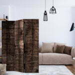 Dekoratives Paravent “Dark Brown Boards [Room Dividers]” ist ein besonderes Schmuckstück für die modernen Inneräume. 3-teilig, hergestellt aus Holz und beidseitig bedrucktes Paravent teilt nicht nur diskret den Raum sonder kreiert auch in dem Raum ein fabelhaftes Arrangement.