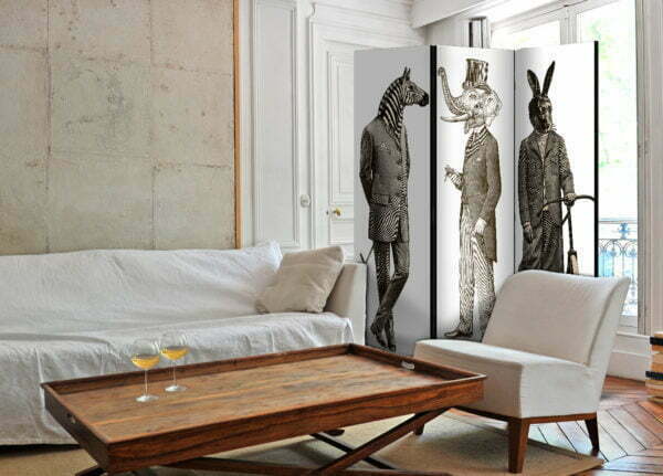 Dekoratives Paravent “Elegant Zoo [Room Dividers]” ist ein besonderes Schmuckstück für die modernen Inneräume. 3-teilig, hergestellt aus Holz und beidseitig bedrucktes Paravent teilt nicht nur diskret den Raum sonder kreiert auch in dem Raum ein fabelhaftes Arrangement. Perfekte Herstellung sowie originelle Motive in der Full HD Druckqualität verursachen, dass die Zimmerparavents jedem Raum einen einmaligen Charme verleihen. Die dekorativen Paravents für die Wohnung, dass ist mit Sicherheit eine originelle Idee für die Dekoration des Innenraumes. Es lohnt sich ihre praktische Anwendung zu erwähnen – die Zimmerparavents kann man z.B. zwecks der Kachierung des Wäschetrockners nutzen. Das Paravent ist eine sehr originelle Dekoration von Räumen, die man nutzen kann, sowohl in der Wohnung wie auch in einem Atelier z.B. im Friseursalon, Arztpraxis oder im Buchhaltungsbüro.