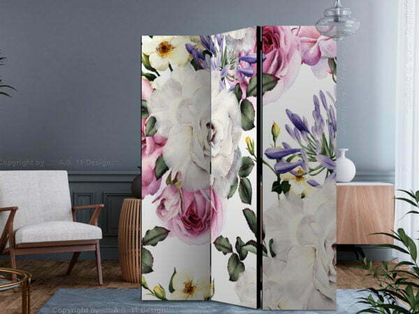 Dekoratives Paravent “Floral Glade [Room Dividers]” ist ein besonderes Schmuckstück für die modernen Inneräume. 3-teilig, hergestellt aus Holz und beidseitig bedrucktes Paravent teilt nicht nur diskret den Raum sonder kreiert auch in dem Raum ein fabelhaftes Arrangement.