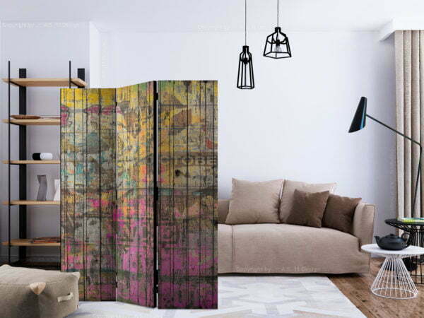 Dekoratives Paravent “Freestyle [Room Dividers]” ist ein besonderes Schmuckstück für die modernen Inneräume. 3-teilig, hergestellt aus Holz und beidseitig bedrucktes Paravent teilt nicht nur diskret den Raum sonder kreiert auch in dem Raum ein fabelhaftes Arrangement.