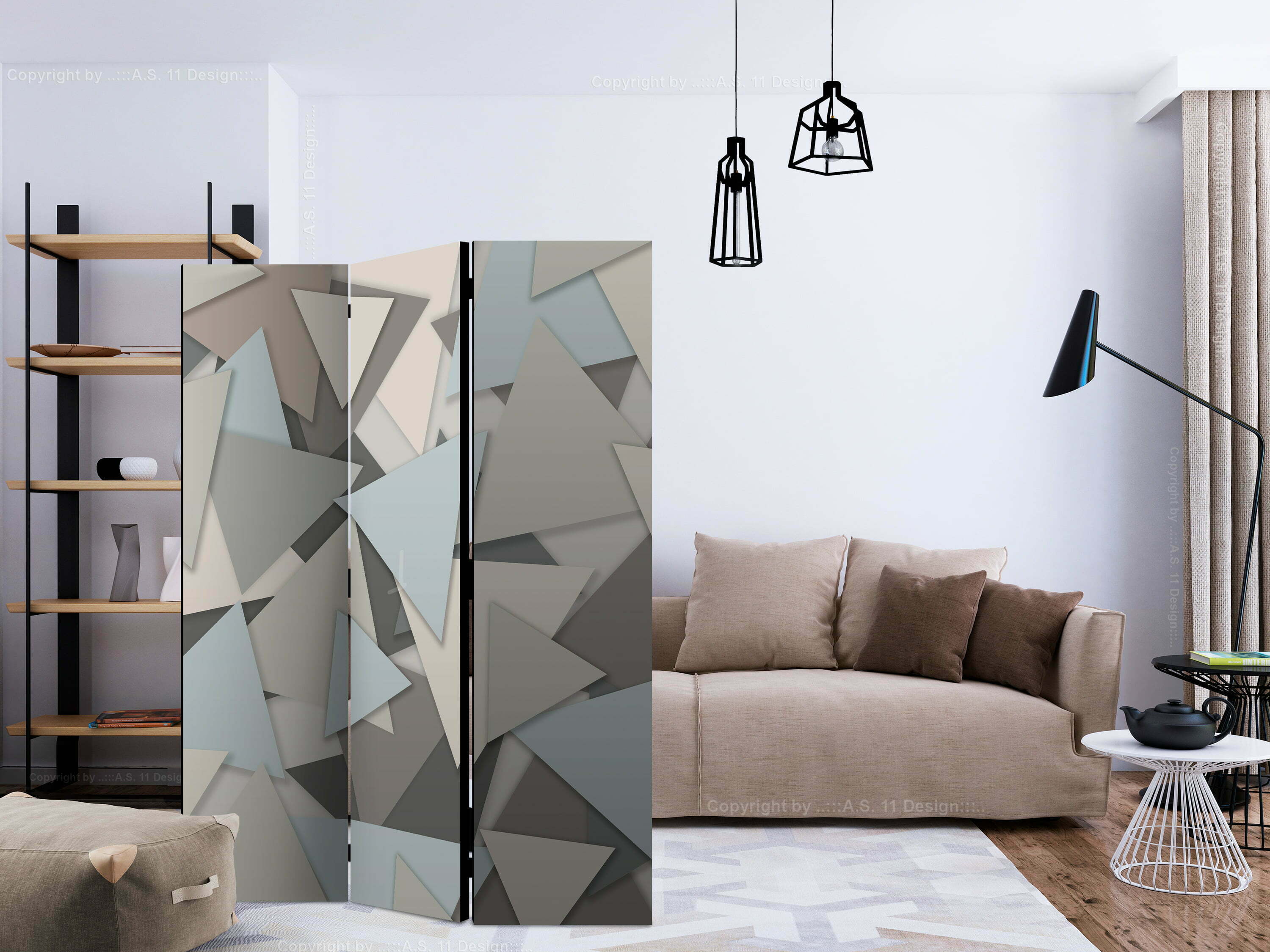 Dekoratives Paravent “Geometric Puzzle [Room Dividers]” ist ein besonderes Schmuckstück für die modernen Inneräume. 3-teilig, hergestellt aus Holz und beidseitig bedrucktes Paravent teilt nicht nur diskret den Raum sonder kreiert auch in dem Raum ein fabelhaftes Arrangement. Perfekte Herstellung sowie originelle Motive in der Full HD Druckqualität verursachen, dass die Zimmerparavents jedem Raum einen einmaligen Charme verleihen. Die dekorativen Paravents für die Wohnung, dass ist mit Sicherheit eine originelle Idee für die Dekoration des Innenraumes. Es lohnt sich ihre praktische Anwendung zu erwähnen – die Zimmerparavents kann man z.B. zwecks der Kachierung des Wäschetrockners nutzen. Das Paravent ist eine sehr originelle Dekoration von Räumen, die man nutzen kann, sowohl in der Wohnung wie auch in einem Atelier z.B. im Friseursalon, Arztpraxis oder im Buchhaltungsbüro.