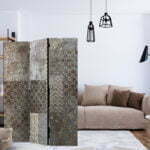 Dekoratives Paravent “Geometric Textures [Room Dividers]” ist ein besonderes Schmuckstück für die modernen Inneräume. 3-teilig, hergestellt aus Holz und beidseitig bedrucktes Paravent teilt nicht nur diskret den Raum sonder kreiert auch in dem Raum ein fabelhaftes Arrangement.