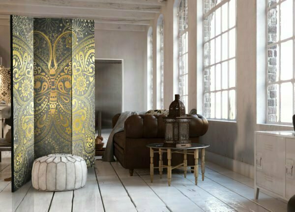 Dekoratives Paravent “Golden Butterfly [Room Dividers]” ist ein besonderes Schmuckstück für die modernen Inneräume. 3-teilig, hergestellt aus Holz und beidseitig bedrucktes Paravent teilt nicht nur diskret den Raum sonder kreiert auch in dem Raum ein fabelhaftes Arrangement. Perfekte Herstellung sowie originelle Motive in der Full HD Druckqualität verursachen, dass die Zimmerparavents jedem Raum einen einmaligen Charme verleihen. Die dekorativen Paravents für die Wohnung, dass ist mit Sicherheit eine originelle Idee für die Dekoration des Innenraumes. Es lohnt sich ihre praktische Anwendung zu erwähnen – die Zimmerparavents kann man z.B. zwecks der Kachierung des Wäschetrockners nutzen. Das Paravent ist eine sehr originelle Dekoration von Räumen, die man nutzen kann, sowohl in der Wohnung wie auch in einem Atelier z.B. im Friseursalon, Arztpraxis oder im Buchhaltungsbüro.