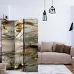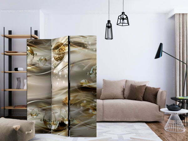 Dekoratives Paravent “Golden Nebula [Room Dividers]” ist ein besonderes Schmuckstück für die modernen Inneräume. 3-teilig, hergestellt aus Holz und beidseitig bedrucktes Paravent teilt nicht nur diskret den Raum sonder kreiert auch in dem Raum ein fabelhaftes Arrangement.