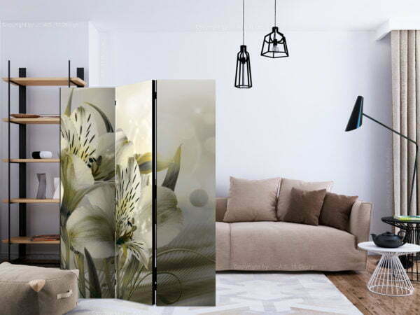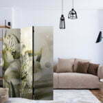 Dekoratives Paravent “Green Daybreak [Room Dividers]” ist ein besonderes Schmuckstück für die modernen Inneräume. 3-teilig, hergestellt aus Holz und beidseitig bedrucktes Paravent teilt nicht nur diskret den Raum sonder kreiert auch in dem Raum ein fabelhaftes Arrangement.