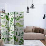 Dekoratives Paravent “Green Twigs [Room Dividers]” ist ein besonderes Schmuckstück für die modernen Inneräume. 3-teilig, hergestellt aus Holz und beidseitig bedrucktes Paravent teilt nicht nur diskret den Raum sonder kreiert auch in dem Raum ein fabelhaftes Arrangement.