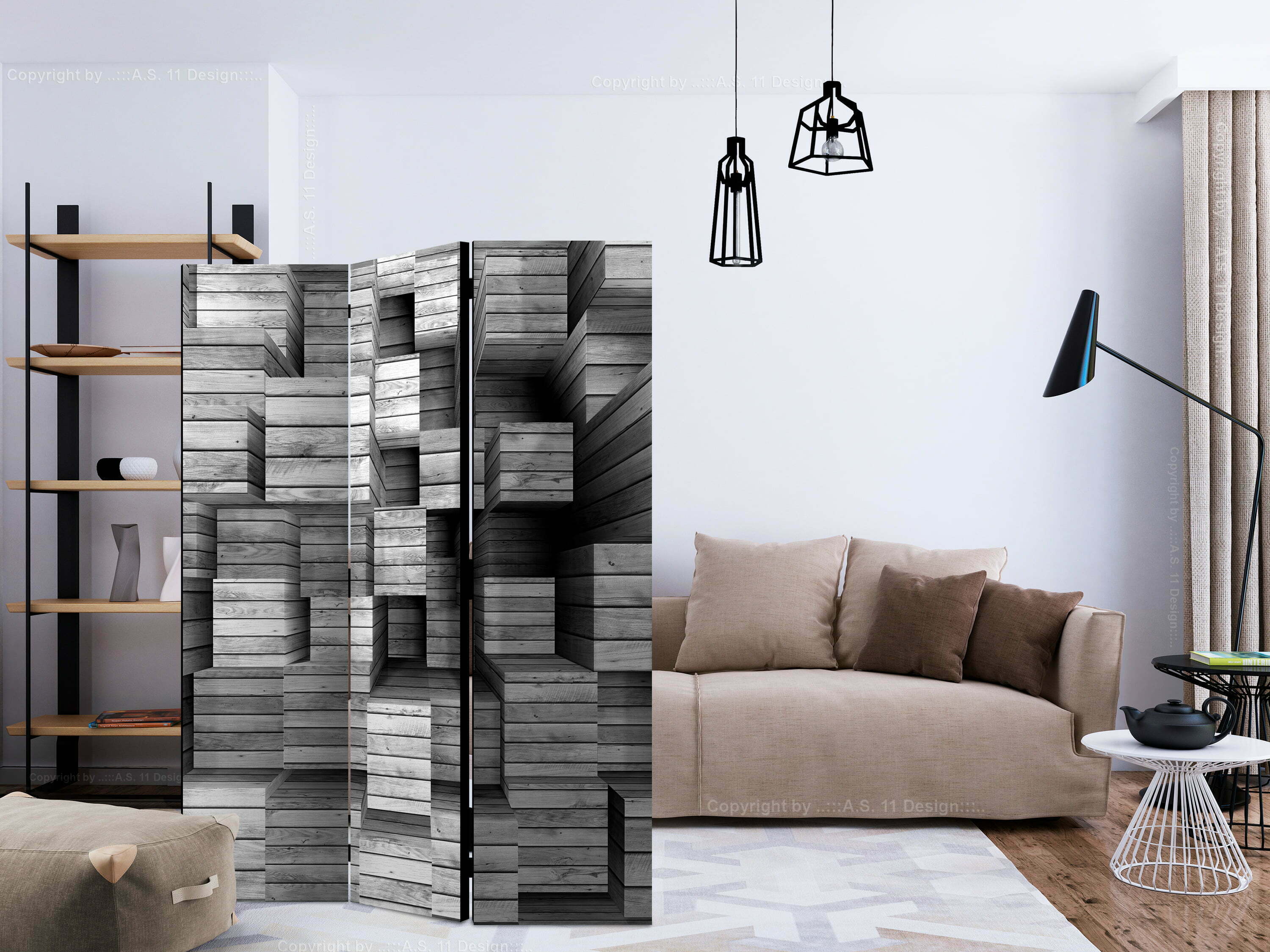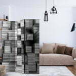 Dekoratives Paravent “Grey Precision [Room Dividers]” ist ein besonderes Schmuckstück für die modernen Inneräume. 3-teilig, hergestellt aus Holz und beidseitig bedrucktes Paravent teilt nicht nur diskret den Raum sonder kreiert auch in dem Raum ein fabelhaftes Arrangement.