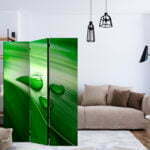 Dekoratives Paravent “Leaf and three drops of water [Room Dividers]” ist ein besonderes Schmuckstück für die modernen Inneräume. 3-teilig, hergestellt aus Holz und beidseitig bedrucktes Paravent teilt nicht nur diskret den Raum sonder kreiert auch in dem Raum ein fabelhaftes Arrangement. Perfekte Herstellung sowie originelle Motive in der Full HD Druckqualität verursachen, dass die Zimmerparavents jedem Raum einen einmaligen Charme verleihen. Die dekorativen Paravents für die Wohnung, dass ist mit Sicherheit eine originelle Idee für die Dekoration des Innenraumes. Es lohnt sich ihre praktische Anwendung zu erwähnen – die Zimmerparavents kann man z.B. zwecks der Kachierung des Wäschetrockners nutzen. Das Paravent ist eine sehr originelle Dekoration von Räumen, die man nutzen kann, sowohl in der Wohnung wie auch in einem Atelier z.B. im Friseursalon, Arztpraxis oder im Buchhaltungsbüro.