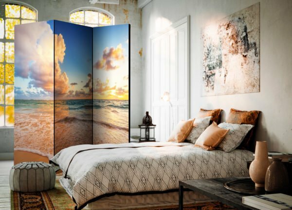 Dekoratives Paravent “Morning by the Sea [Room Dividers]” ist ein besonderes Schmuckstück für die modernen Inneräume. 3-teilig, hergestellt aus Holz und beidseitig bedrucktes Paravent teilt nicht nur diskret den Raum sonder kreiert auch in dem Raum ein fabelhaftes Arrangement. Perfekte Herstellung sowie originelle Motive in der Full HD Druckqualität verursachen, dass die Zimmerparavents jedem Raum einen einmaligen Charme verleihen. Die dekorativen Paravents für die Wohnung, dass ist mit Sicherheit eine originelle Idee für die Dekoration des Innenraumes. Es lohnt sich ihre praktische Anwendung zu erwähnen – die Zimmerparavents kann man z.B. zwecks der Kachierung des Wäschetrockners nutzen. Das Paravent ist eine sehr originelle Dekoration von Räumen, die man nutzen kann, sowohl in der Wohnung wie auch in einem Atelier z.B. im Friseursalon, Arztpraxis oder im Buchhaltungsbüro.