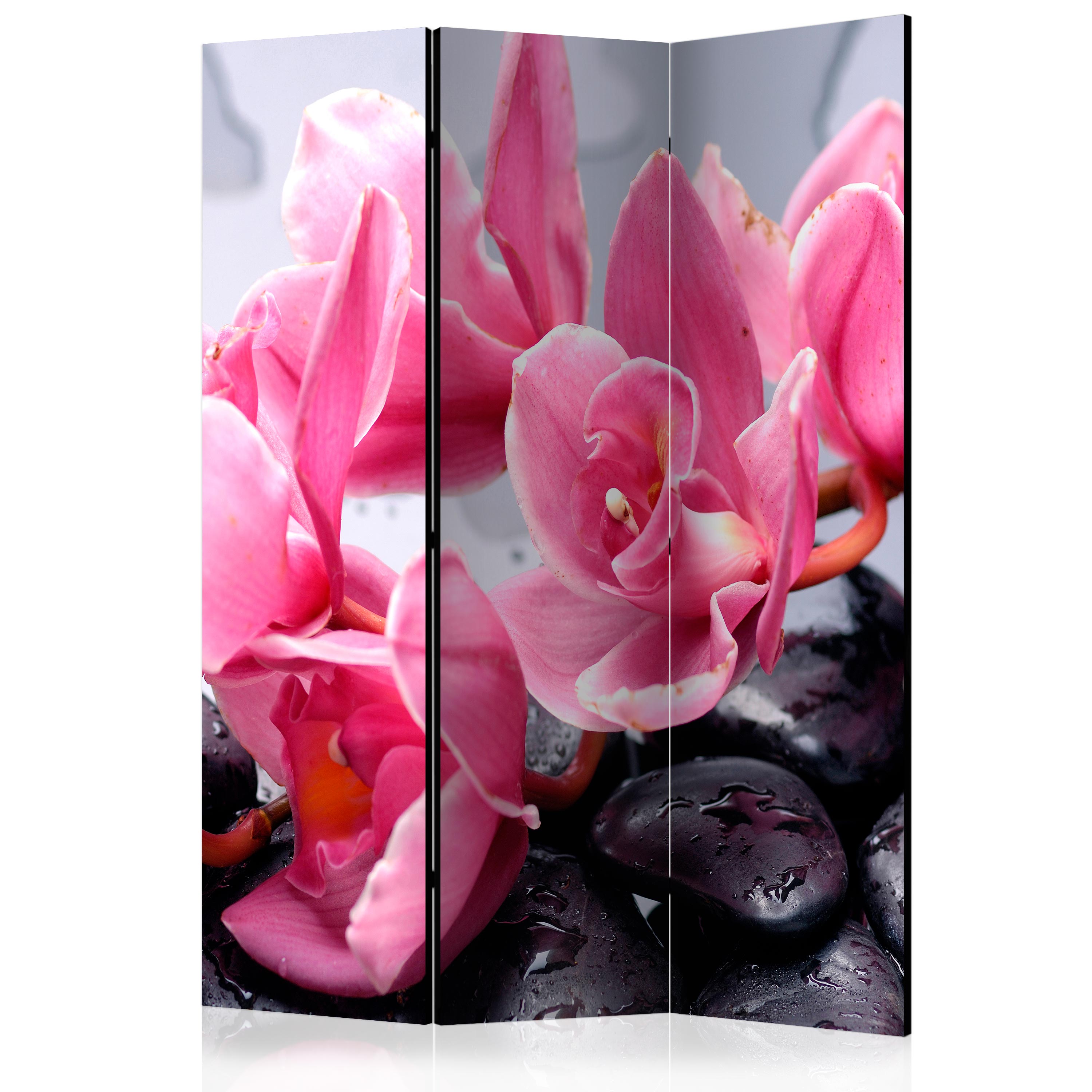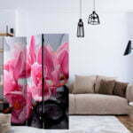 3-teiliges Paravent – Orchid flowers with zen stones [Room Dividers]