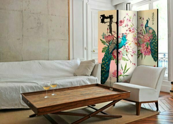3-teiliges Paravent – Peacock Love [Room Dividers]