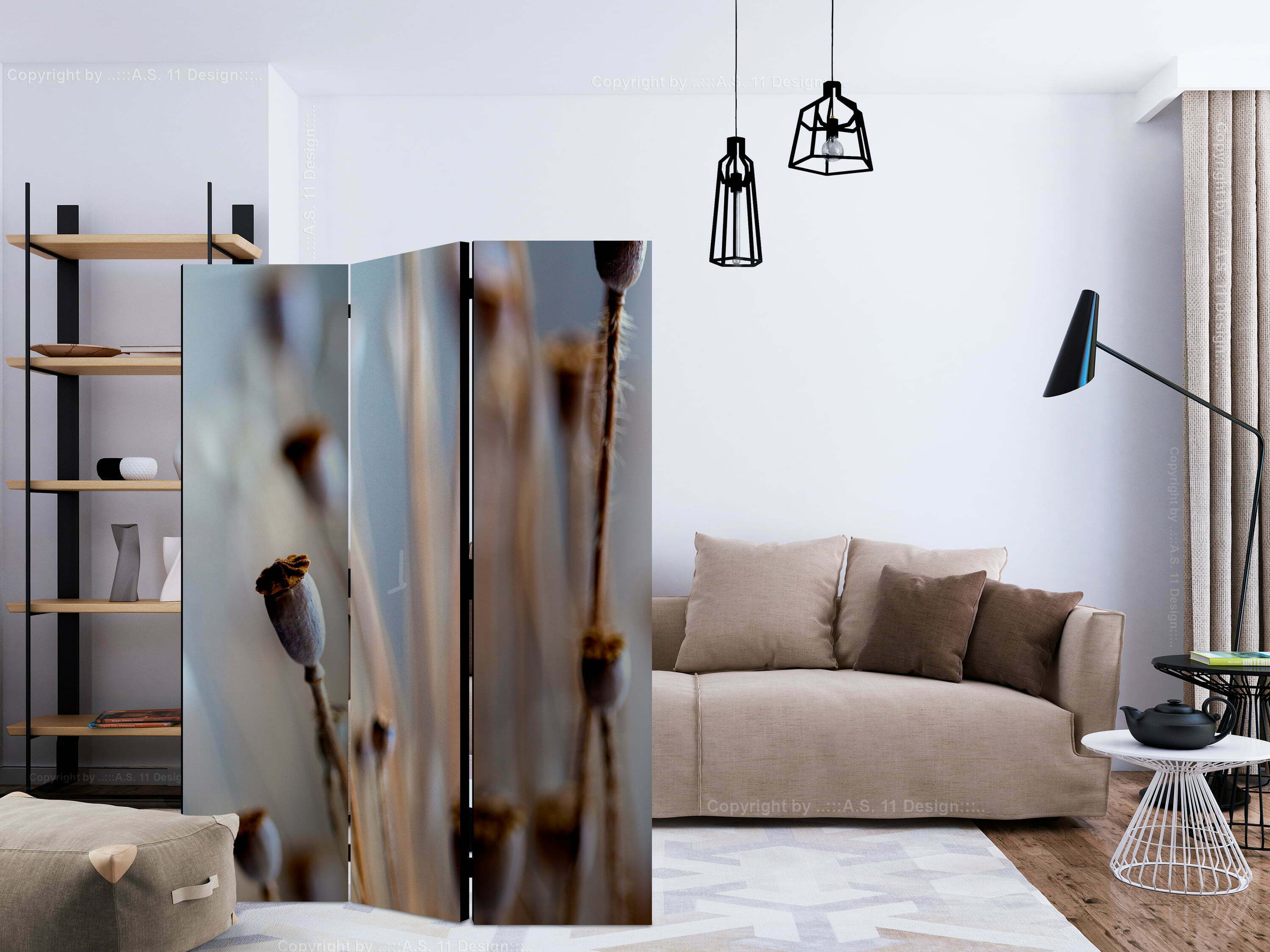 3-teiliges Paravent – Poppy heads [Room Dividers]