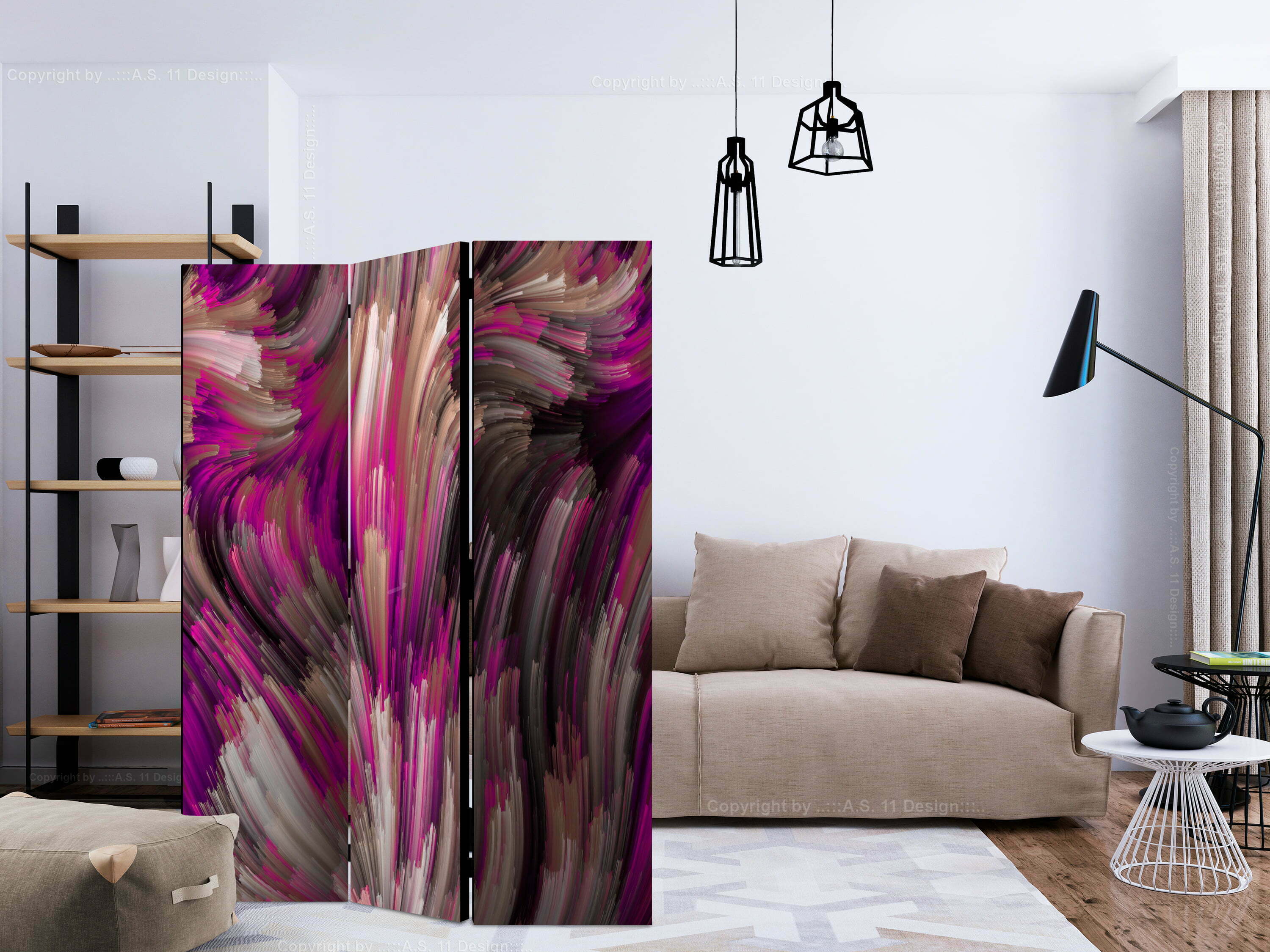 Dekoratives Paravent “Purple Energy [Room Dividers]” ist ein besonderes Schmuckstück für die modernen Inneräume. 3-teilig, hergestellt aus Holz und beidseitig bedrucktes Paravent teilt nicht nur diskret den Raum sonder kreiert auch in dem Raum ein fabelhaftes Arrangement.