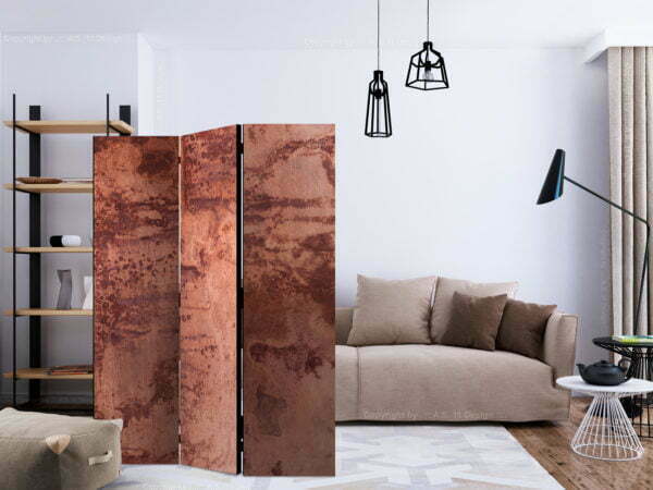 Dekoratives Paravent “Red Metal Sheet [Room Dividers]” ist ein besonderes Schmuckstück für die modernen Inneräume. 3-teilig, hergestellt aus Holz und beidseitig bedrucktes Paravent teilt nicht nur diskret den Raum sonder kreiert auch in dem Raum ein fabelhaftes Arrangement.