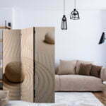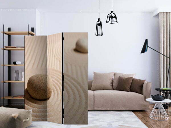 Dekoratives Paravent “Sand and zen [Room Dividers]” ist ein besonderes Schmuckstück für die modernen Inneräume. 3-teilig, hergestellt aus Holz und beidseitig bedrucktes Paravent teilt nicht nur diskret den Raum sonder kreiert auch in dem Raum ein fabelhaftes Arrangement.