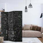 Dekoratives Paravent “Science on Chalkboard [Room Dividers]” ist ein besonderes Schmuckstück für die modernen Inneräume. 3-teilig, hergestellt aus Holz und beidseitig bedrucktes Paravent teilt nicht nur diskret den Raum sonder kreiert auch in dem Raum ein fabelhaftes Arrangement. Perfekte Herstellung sowie originelle Motive in der Full HD Druckqualität verursachen, dass die Zimmerparavents jedem Raum einen einmaligen Charme verleihen. Die dekorativen Paravents für die Wohnung, dass ist mit Sicherheit eine originelle Idee für die Dekoration des Innenraumes. Es lohnt sich ihre praktische Anwendung zu erwähnen – die Zimmerparavents kann man z.B. zwecks der Kachierung des Wäschetrockners nutzen. Das Paravent ist eine sehr originelle Dekoration von Räumen, die man nutzen kann, sowohl in der Wohnung wie auch in einem Atelier z.B. im Friseursalon, Arztpraxis oder im Buchhaltungsbüro.