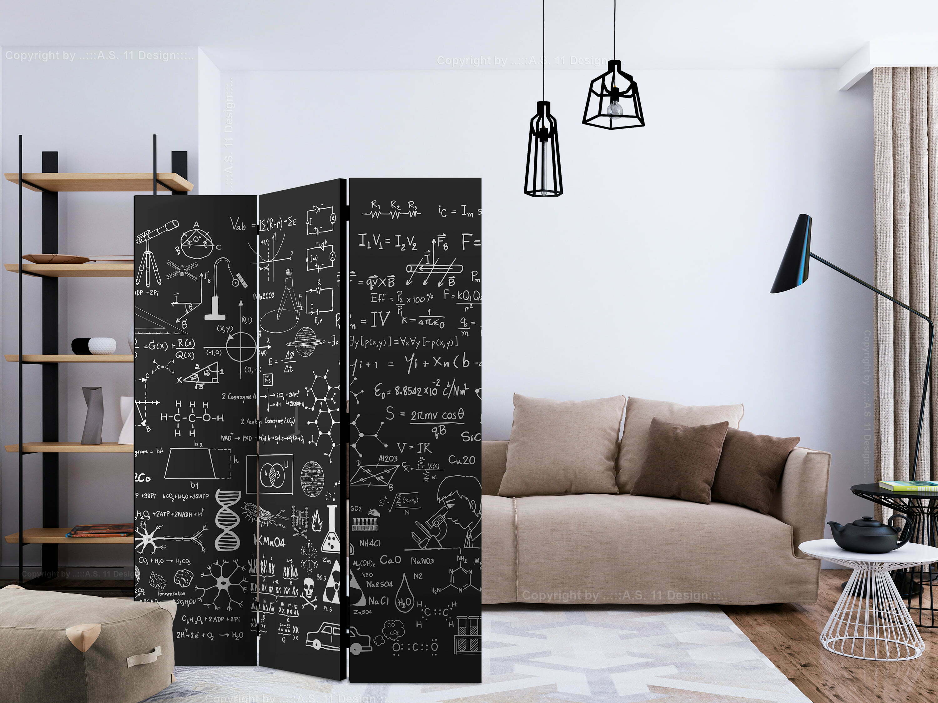 Dekoratives Paravent “Science on Chalkboard [Room Dividers]” ist ein besonderes Schmuckstück für die modernen Inneräume. 3-teilig, hergestellt aus Holz und beidseitig bedrucktes Paravent teilt nicht nur diskret den Raum sonder kreiert auch in dem Raum ein fabelhaftes Arrangement.