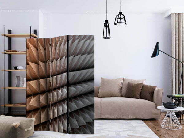 Dekoratives Paravent “Steel Defense [Room Dividers]” ist ein besonderes Schmuckstück für die modernen Inneräume. 3-teilig, hergestellt aus Holz und beidseitig bedrucktes Paravent teilt nicht nur diskret den Raum sonder kreiert auch in dem Raum ein fabelhaftes Arrangement.