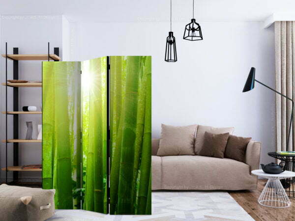 Dekoratives Paravent “Sun and bamboo [Room Dividers]” ist ein besonderes Schmuckstück für die modernen Inneräume. 3-teilig, hergestellt aus Holz und beidseitig bedrucktes Paravent teilt nicht nur diskret den Raum sonder kreiert auch in dem Raum ein fabelhaftes Arrangement.