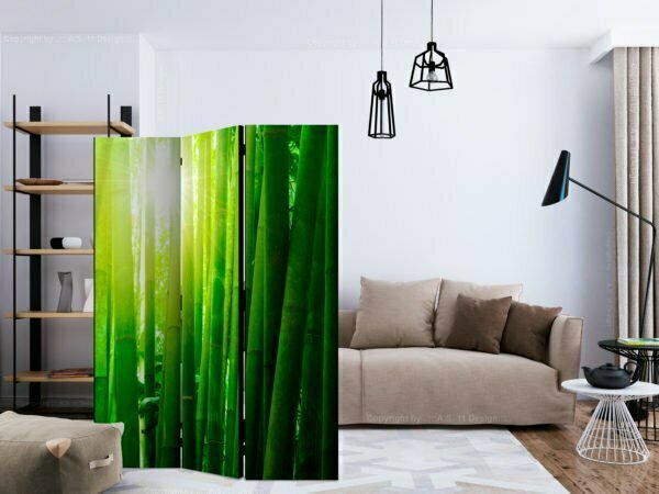 Dekoratives Paravent “Sun and bamboo [Room Dividers]” ist ein besonderes Schmuckstück für die modernen Inneräume. 3-teilig, hergestellt aus Holz und beidseitig bedrucktes Paravent teilt nicht nur diskret den Raum sonder kreiert auch in dem Raum ein fabelhaftes Arrangement.