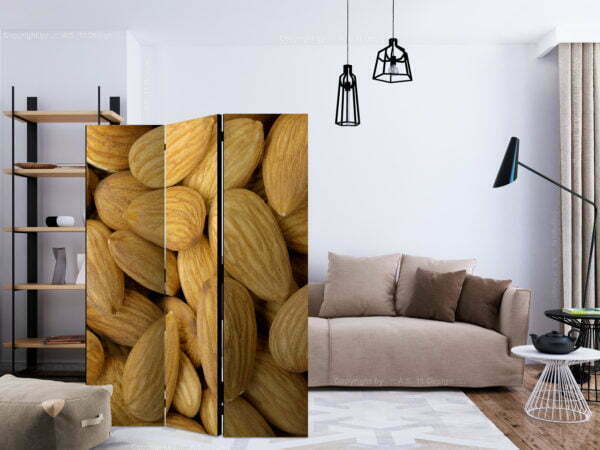 Dekoratives Paravent “Tasty almonds [Room Dividers]” ist ein besonderes Schmuckstück für die modernen Inneräume. 3-teilig, hergestellt aus Holz und beidseitig bedrucktes Paravent teilt nicht nur diskret den Raum sonder kreiert auch in dem Raum ein fabelhaftes Arrangement.
