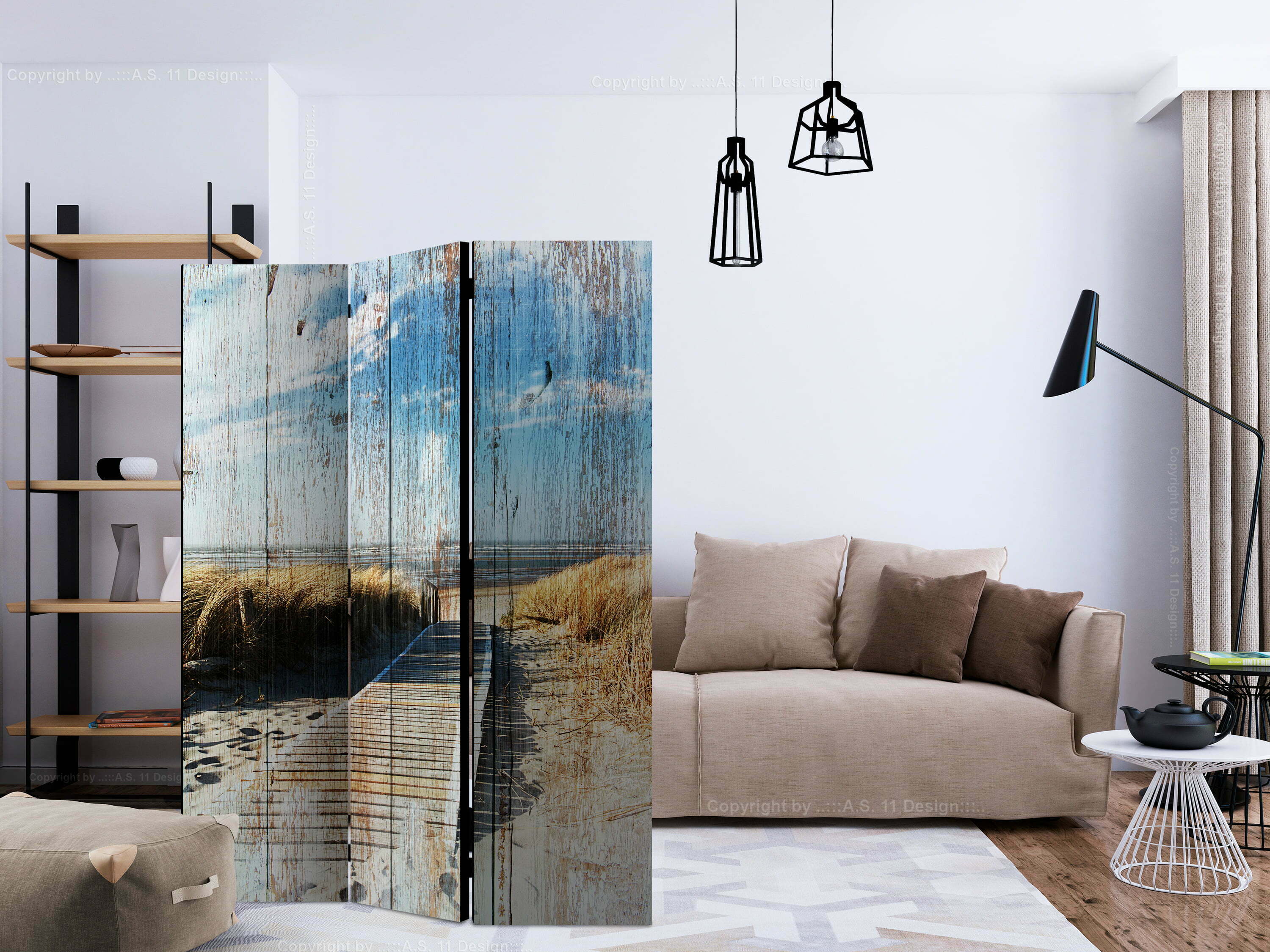 Dekoratives Paravent “Unforgettable Summer [Room Dividers]” ist ein besonderes Schmuckstück für die modernen Inneräume. 3-teilig, hergestellt aus Holz und beidseitig bedrucktes Paravent teilt nicht nur diskret den Raum sonder kreiert auch in dem Raum ein fabelhaftes Arrangement.
