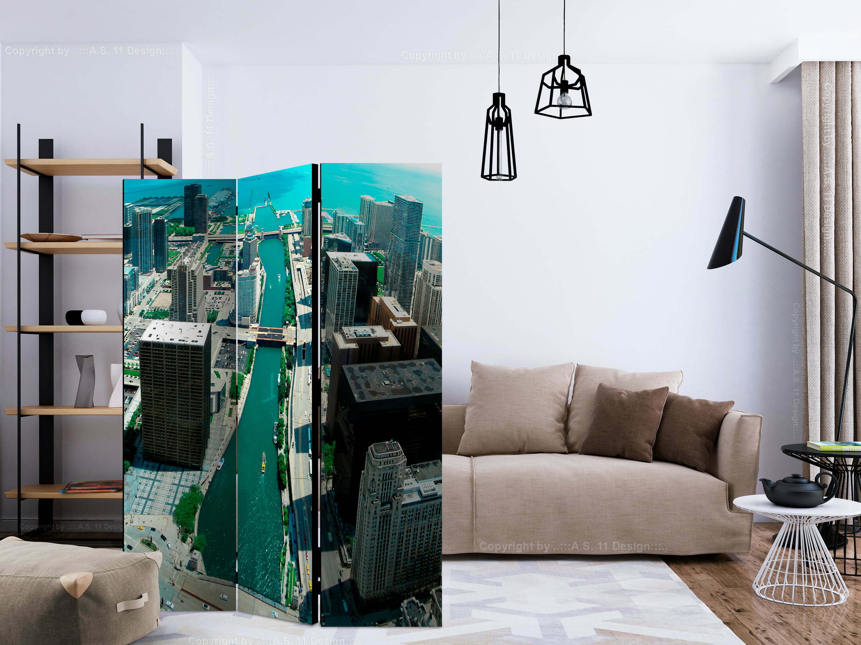 3-teiliges Paravent – Urban architecture of Chicago [Room Dividers]