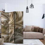 Dekoratives Paravent “Velvet Kiss [Room Dividers]” ist ein besonderes Schmuckstück für die modernen Inneräume. 3-teilig, hergestellt aus Holz und beidseitig bedrucktes Paravent teilt nicht nur diskret den Raum sonder kreiert auch in dem Raum ein fabelhaftes Arrangement.