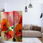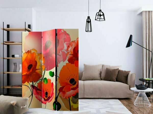 Dekoratives Paravent “Velvet Poppies [Room Dividers]” ist ein besonderes Schmuckstück für die modernen Inneräume. 3-teilig, hergestellt aus Holz und beidseitig bedrucktes Paravent teilt nicht nur diskret den Raum sonder kreiert auch in dem Raum ein fabelhaftes Arrangement.