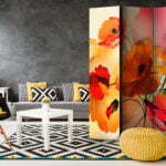 Dekoratives Paravent “Velvet Poppies [Room Dividers]” ist ein besonderes Schmuckstück für die modernen Inneräume. 3-teilig, hergestellt aus Holz und beidseitig bedrucktes Paravent teilt nicht nur diskret den Raum sonder kreiert auch in dem Raum ein fabelhaftes Arrangement.