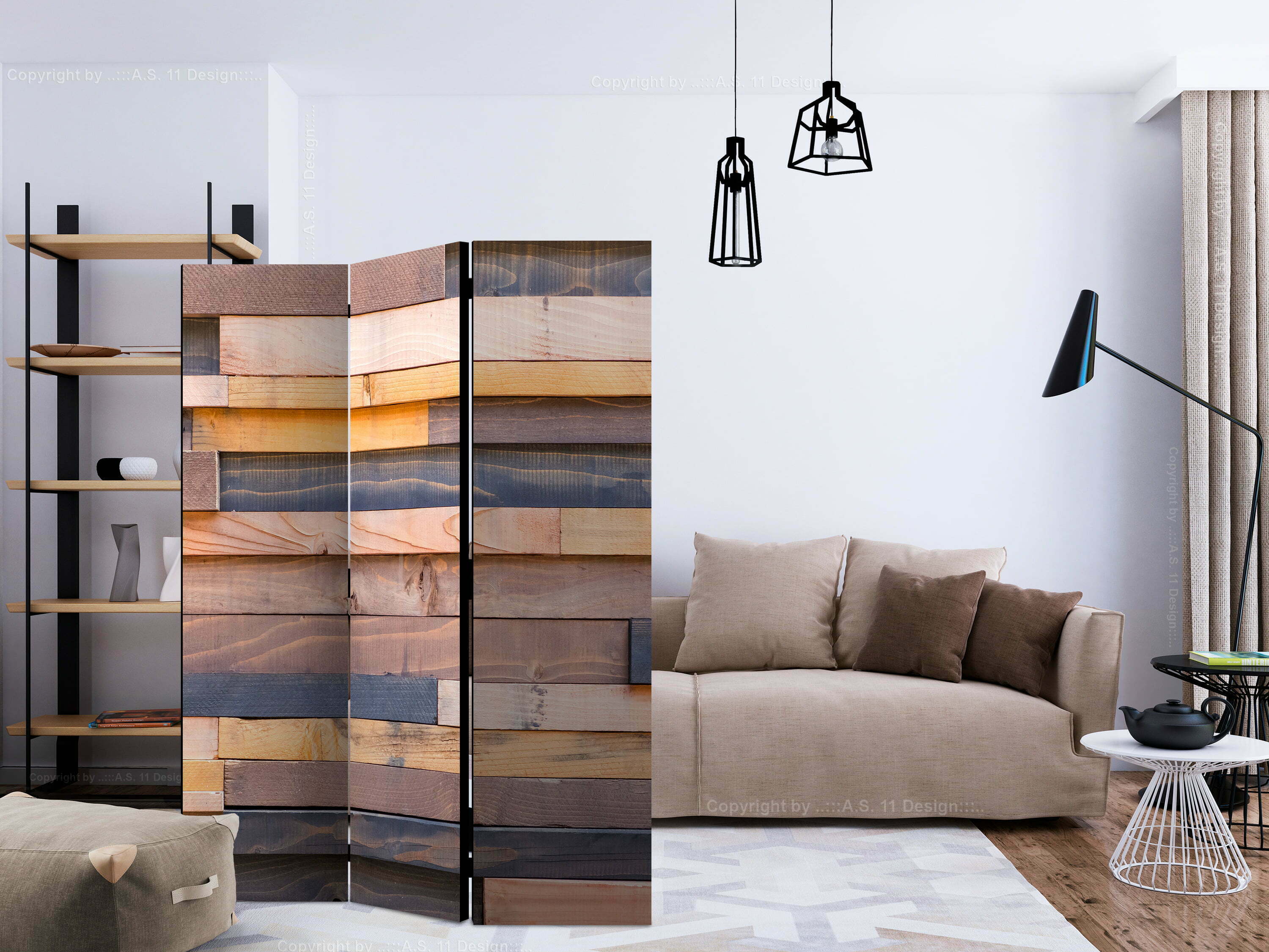 3-teiliges Paravent – Wooden Castle [Room Dividers]