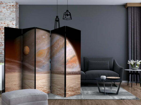 Dekoratives Paravent “A small and a big planet II [Room Dividers]” ist ein besonderes Schmuckstück für die modernen Inneräume. 5-teilig, hergestellt aus Holz und beidseitig bedrucktes Paravent teilt nicht nur diskret den Raum sonder kreiert auch in dem Raum ein fabelhaftes Arrangement.