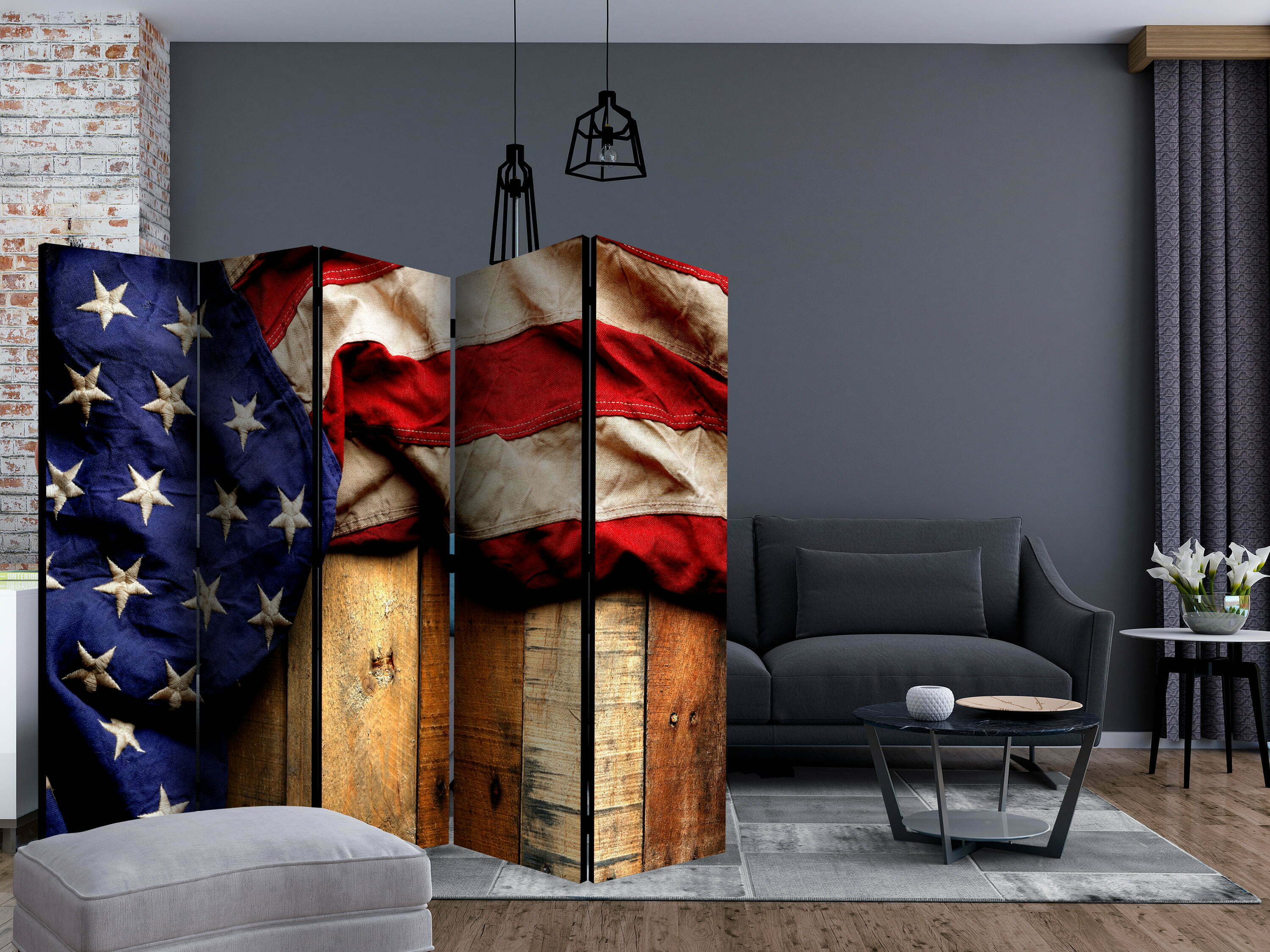 Dekoratives Paravent “American Style II [Room Dividers]” ist ein besonderes Schmuckstück für die modernen Inneräume. 5-teilig, hergestellt aus Holz und beidseitig bedrucktes Paravent teilt nicht nur diskret den Raum sonder kreiert auch in dem Raum ein fabelhaftes Arrangement. Perfekte Herstellung sowie originelle Motive in der Full HD Druckqualität verursachen, dass die Zimmerparavents jedem Raum einen einmaligen Charme verleihen. Die dekorativen Paravents für die Wohnung, dass ist mit Sicherheit eine originelle Idee für die Dekoration des Innenraumes. Es lohnt sich ihre praktische Anwendung zu erwähnen – die Zimmerparavents kann man z.B. zwecks der Kachierung des Wäschetrockners nutzen. Das Paravent ist eine sehr originelle Dekoration von Räumen, die man nutzen kann, sowohl in der Wohnung wie auch in einem Atelier z.B. im Friseursalon, Arztpraxis oder im Buchhaltungsbüro.