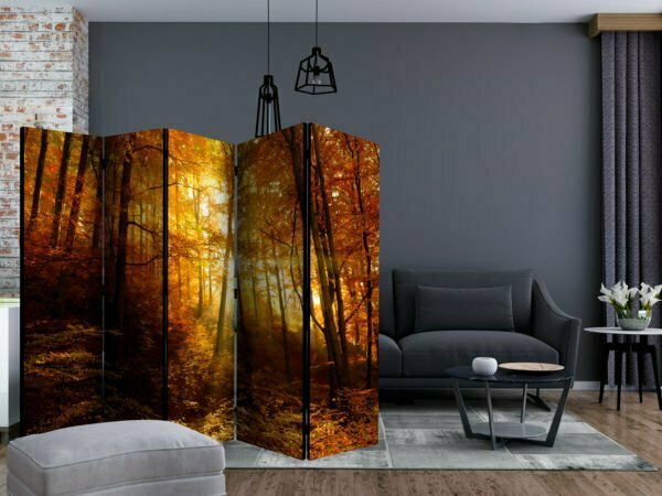 Dekoratives Paravent “Autumn Illumination II [Room Dividers]” ist ein besonderes Schmuckstück für die modernen Inneräume. 5-teilig, hergestellt aus Holz und beidseitig bedrucktes Paravent teilt nicht nur diskret den Raum sonder kreiert auch in dem Raum ein fabelhaftes Arrangement. Perfekte Herstellung sowie originelle Motive in der Full HD Druckqualität verursachen, dass die Zimmerparavents jedem Raum einen einmaligen Charme verleihen. Die dekorativen Paravents für die Wohnung, dass ist mit Sicherheit eine originelle Idee für die Dekoration des Innenraumes. Es lohnt sich ihre praktische Anwendung zu erwähnen – die Zimmerparavents kann man z.B. zwecks der Kachierung des Wäschetrockners nutzen. Das Paravent ist eine sehr originelle Dekoration von Räumen, die man nutzen kann, sowohl in der Wohnung wie auch in einem Atelier z.B. im Friseursalon, Arztpraxis oder im Buchhaltungsbüro.