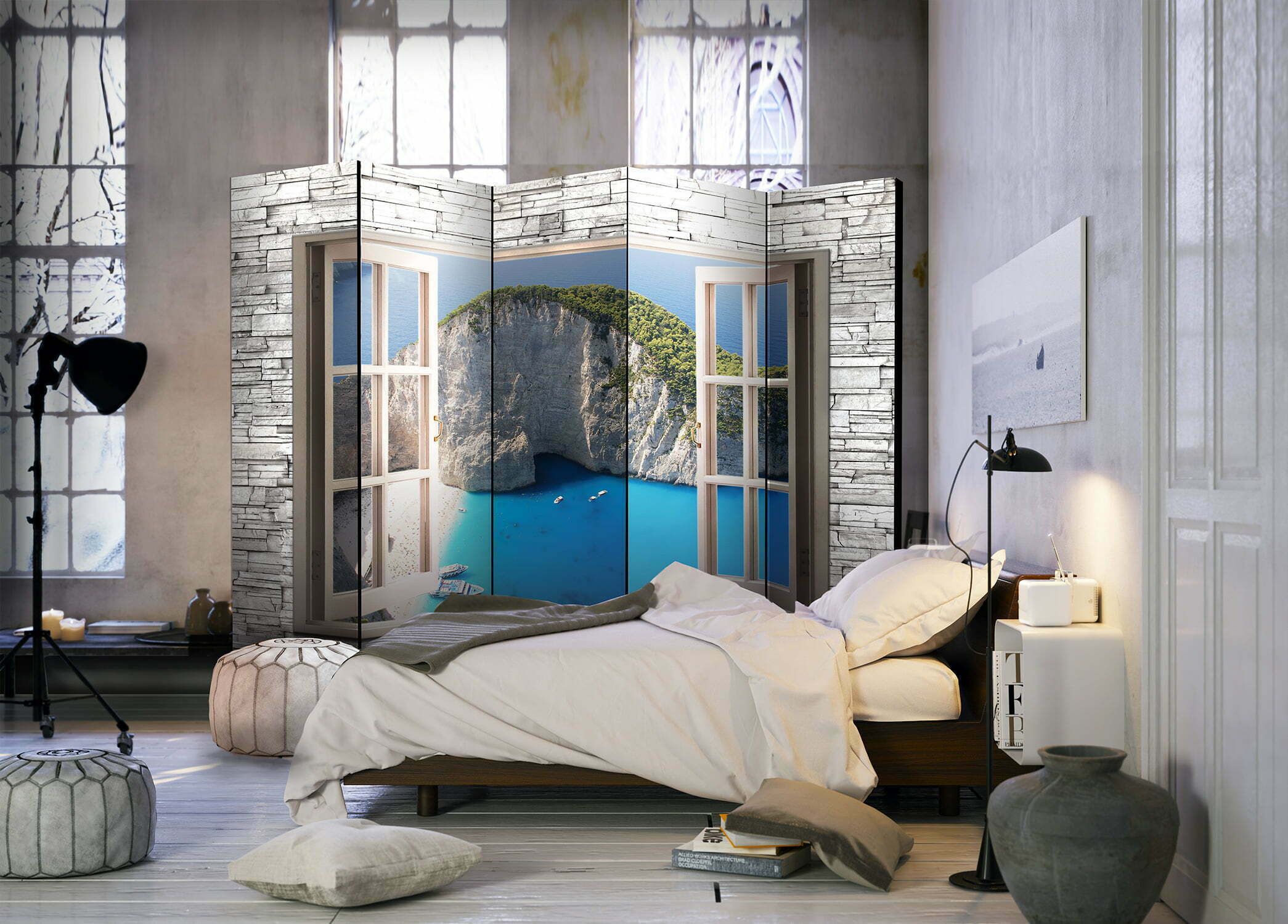 Dekoratives Paravent “Azure Paradise II [Room Dividers]” ist ein besonderes Schmuckstück für die modernen Inneräume. 5-teilig, hergestellt aus Holz und beidseitig bedrucktes Paravent teilt nicht nur diskret den Raum sonder kreiert auch in dem Raum ein fabelhaftes Arrangement. Perfekte Herstellung sowie originelle Motive in der Full HD Druckqualität verursachen, dass die Zimmerparavents jedem Raum einen einmaligen Charme verleihen. Die dekorativen Paravents für die Wohnung, dass ist mit Sicherheit eine originelle Idee für die Dekoration des Innenraumes. Es lohnt sich ihre praktische Anwendung zu erwähnen – die Zimmerparavents kann man z.B. zwecks der Kachierung des Wäschetrockners nutzen. Das Paravent ist eine sehr originelle Dekoration von Räumen, die man nutzen kann, sowohl in der Wohnung wie auch in einem Atelier z.B. im Friseursalon, Arztpraxis oder im Buchhaltungsbüro.