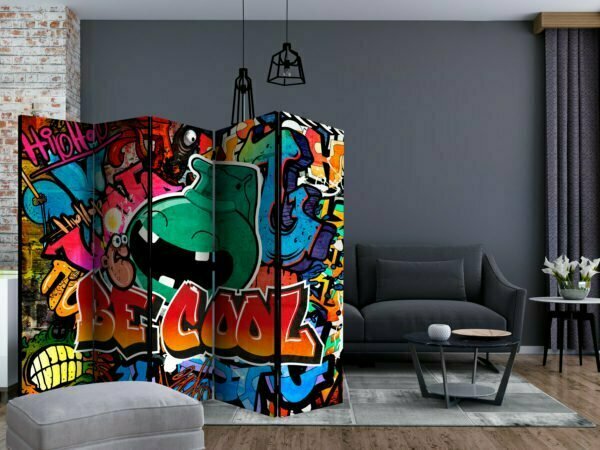 Dekoratives Paravent “Be Cool II [Room Dividers]” ist ein besonderes Schmuckstück für die modernen Inneräume. 5-teilig, hergestellt aus Holz und beidseitig bedrucktes Paravent teilt nicht nur diskret den Raum sonder kreiert auch in dem Raum ein fabelhaftes Arrangement. Perfekte Herstellung sowie originelle Motive in der Full HD Druckqualität verursachen, dass die Zimmerparavents jedem Raum einen einmaligen Charme verleihen. Die dekorativen Paravents für die Wohnung, dass ist mit Sicherheit eine originelle Idee für die Dekoration des Innenraumes. Es lohnt sich ihre praktische Anwendung zu erwähnen – die Zimmerparavents kann man z.B. zwecks der Kachierung des Wäschetrockners nutzen. Das Paravent ist eine sehr originelle Dekoration von Räumen, die man nutzen kann, sowohl in der Wohnung wie auch in einem Atelier z.B. im Friseursalon, Arztpraxis oder im Buchhaltungsbüro.