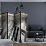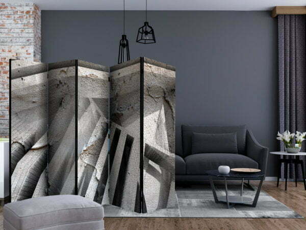Dekoratives Paravent “Beton 3D II [Room Dividers]” ist ein besonderes Schmuckstück für die modernen Inneräume. 5-teilig, hergestellt aus Holz und beidseitig bedrucktes Paravent teilt nicht nur diskret den Raum sonder kreiert auch in dem Raum ein fabelhaftes Arrangement.